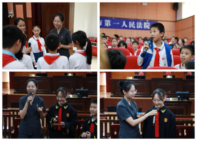 啟蒙·在互動(dòng)體驗(yàn)中感知重量 “同學(xué)們,你們知道法官是做什么的嗎?”“這件黑色的法袍,又代表著什么呢?”活動(dòng)伊始,法院干警用一連串有趣的問(wèn)題,瞬間拉近了法律與孩子們的距離。她用親切易懂的語(yǔ)言,為同學(xué)們揭開(kāi)了法院的神秘面紗。