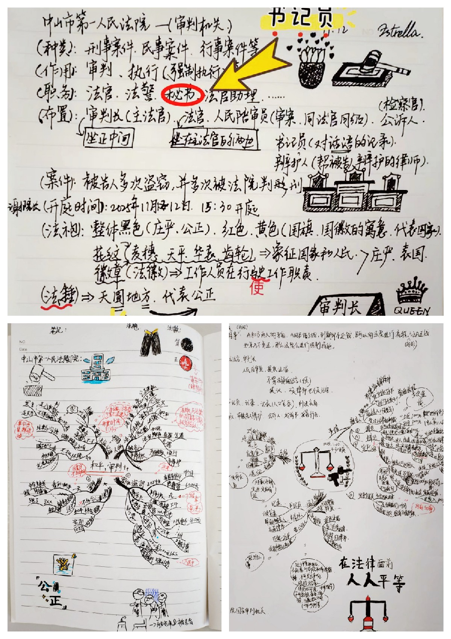 近日,中山市第一人民法院迎來(lái)了一群特殊的“小客人”,一場(chǎng)名為“法槌花開(kāi)”的普法活動(dòng),在此悄然綻放。石岐中心小學(xué)六年級(jí)的300多名師生,將道德與法治的課堂“搬”進(jìn)了法院,開(kāi)啟了一場(chǎng)沉浸式的法治學(xué)習(xí)之旅。 初遇·在莊嚴(yán)肅穆中播種好奇 午后時(shí)分,同學(xué)們步履輕快,眼中閃爍著期待的光芒,在審判大樓前合影留念,為這次法治之旅按下開(kāi)場(chǎng)鍵。跟隨著老師和法院工作人員的腳步,他們有序步入第十三法庭。安靜的氛圍、高懸的國(guó)徽、肅靜的席位……眼前的一切,讓原本興奮的孩子們不自覺(jué)地理了理衣角,放慢了腳步,眼神里寫(xiě)滿(mǎn)了敬畏與好奇。
