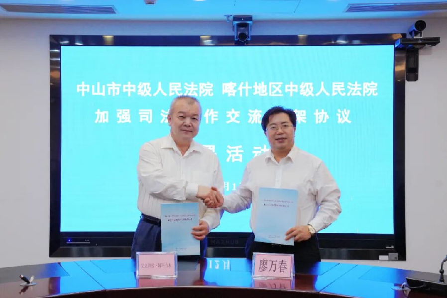 中山中院與喀什中院簽訂加強司法協(xié)作交流框架協(xié)議