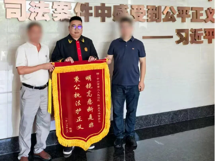 “太感謝法官了!我們拿到了全部工資!”中山某紙品公司的5名職工代表,捧著一面印著“公正司法護民生