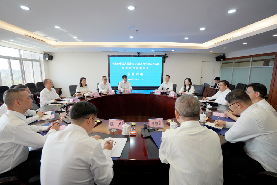 根據(jù)《協(xié)議》,兩地法院將攜手深化生態(tài)環(huán)境司法保護(hù)協(xié)作機(jī)制,加強(qiáng)珠江、烏江流域等重點(diǎn)水域及五桂山、古銀杏之鄉(xiāng)等重點(diǎn)區(qū)域的生態(tài)環(huán)境司法保護(hù)力度,建立健全生效判決委托或協(xié)助執(zhí)行制度,共同破解生態(tài)修復(fù)難題;精準(zhǔn)對接優(yōu)化營商環(huán)境需求,在金融風(fēng)險(xiǎn)防范、知識(shí)產(chǎn)權(quán)審判及破產(chǎn)處置等領(lǐng)域?qū)嵤敖Y(jié)對幫扶”,共享商事解紛成功經(jīng)驗(yàn);深度融合數(shù)字法院與人才培育,融入“全國法院一張網(wǎng)”建設(shè),互鑒電子卷宗隨案生成經(jīng)驗(yàn),并建立審判專家聯(lián)合培養(yǎng)與重大課題聯(lián)合調(diào)研機(jī)制,實(shí)現(xiàn)從“單向輸血”向“雙向造血”轉(zhuǎn)變。 楊方程表示,協(xié)議的簽訂為兩地法院深化交流提供了良好契機(jī),有助于雙方互學(xué)互鑒、共同提升司法服務(wù)水平。廖萬春表示,中山與六盤水共飲珠江水、同是一家人,中山市中級人民法院將逐項(xiàng)抓好協(xié)議落實(shí),推動(dòng)兩地司法協(xié)作走深走實(shí)、見行見效。 簽約儀式后,兩地法院就深化司法協(xié)作、以高水平司法服務(wù)護(hù)航兩地經(jīng)濟(jì)社會(huì)高質(zhì)量發(fā)展進(jìn)行了深入座談交流。 文盾校對——用科技,守文字