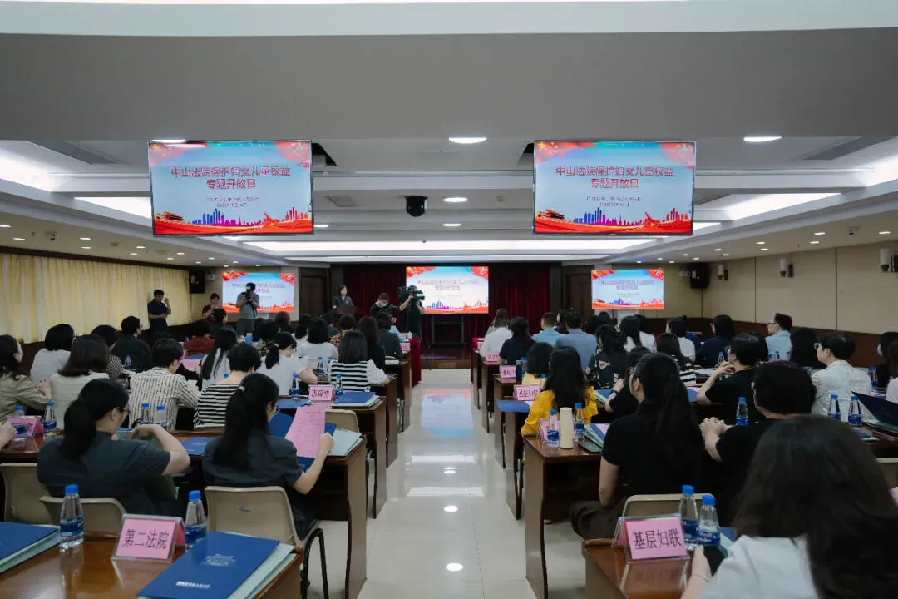 中山歷來高度重視婦女兒童權(quán)益保護(hù)工作,早在2013年中山市就被確定為全國家庭教育指導(dǎo)服務(wù)體系試點(diǎn)城市,將家庭教育納入城鄉(xiāng)公共服務(wù)體系,形成黨委政府重視、部門聯(lián)動(dòng)配合、社會(huì)共同參與家庭教育的中山模式。據(jù)統(tǒng)計(jì),中山市婦女兒童的主要權(quán)益指標(biāo)處于廣東省前列。作為最高人民法院指定的全國首批家事審判改革試點(diǎn)單位,中山法院近年來全面開啟家事審判機(jī)制和方式的改革,創(chuàng)新多項(xiàng)在全省乃至全國領(lǐng)先的制度,不僅推動(dòng)了我國家事審判領(lǐng)域的法治化進(jìn)程,也為訴源治理、法治中山建設(shè)提供了可復(fù)制、可推廣的經(jīng)驗(yàn)。 為了進(jìn)一步加強(qiáng)婦女兒童權(quán)益的司法保障,推動(dòng)婚姻家庭糾紛的訴源治理工作,4月16日,中山兩級法院三個(gè)會(huì)場同時(shí)舉辦了中山法院保護(hù)婦女兒童權(quán)益專題開放日活動(dòng)。 上午9:30,在市中級法院,全國人大代表米雪梅等全國、省、市人大代表、政協(xié)委員、市婦聯(lián)領(lǐng)導(dǎo)、鎮(zhèn)街婦聯(lián)主席及相關(guān)業(yè)務(wù)骨干、市家庭教育講師團(tuán)成員、律師、新聞媒體記者共計(jì)102人參加活動(dòng);69名代表、委員等在市第一法院、市第二法院分會(huì)場參加活動(dòng),零距離感受中山法院婦女兒童權(quán)益保護(hù)工作新成效。