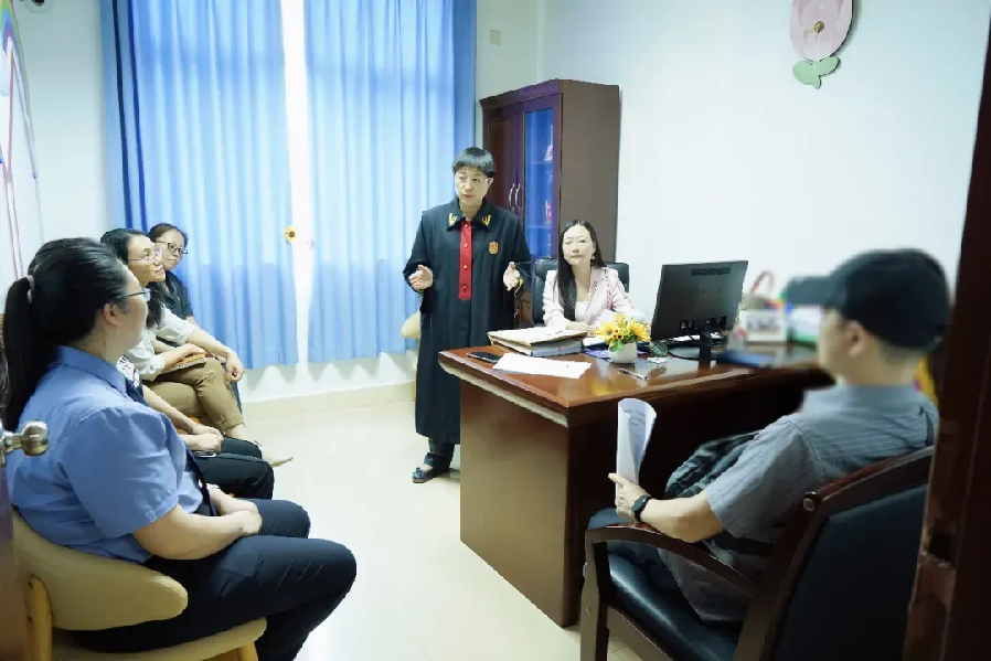 “親子修復(fù)是一個長期的工作,你認(rèn)為的修復(fù)好可能只是表象,要常常陪伴為孩子提供安全感,重新學(xué)會做爸爸?!毙睦碜稍儙熢谛∶鞲改鸽p方的交談中敏銳的找到了問題和癥結(jié),運用專業(yè)知識從孩子成長的角度、夫妻雙方角色分配等角度進行了客觀分析,逐漸紓解了雙方當(dāng)事人心中長期郁結(jié)的負面情緒,增進了相互的理解?!半x婚不是一件失敗的事,但因為離婚導(dǎo)致對孩子的傷害才是失敗的事,家庭暴力不僅是違法行為,更是導(dǎo)致家庭關(guān)系惡劣的根源,和諧親子關(guān)系是有效實施家庭教育的前提,不要讓孩子用一生去療愈不幸的童年。”黃燕芳法官則將晦澀難懂的法律知識“掰開揉碎”一點點向阿成進行細致講解,并告知其家庭是溫暖的港灣,是講愛、講關(guān)懷的地方,在子女教育方面要投入更多的耐心和溫情,文明開展家庭教育,當(dāng)好合格家長。 為孩子守護成長的晴空“一下午的心理疏導(dǎo)和家庭教育指導(dǎo)工作能換來一家人帶著笑容離開法庭,真好啊!”看著阿成一家四口一起離開的背影,大家紛紛感嘆道。在承辦法官、檢察官、婦聯(lián)干部和心理咨詢師的合力配合下,小明父母從剛開始的兩方水火不容,到現(xiàn)在氣氛緩和,這套“組合拳”終見成效,小明父母已打開心結(jié),雖已離婚,但為孩子健康成長,也愿放下恩怨,相互配合,做好孩子的家庭教育。