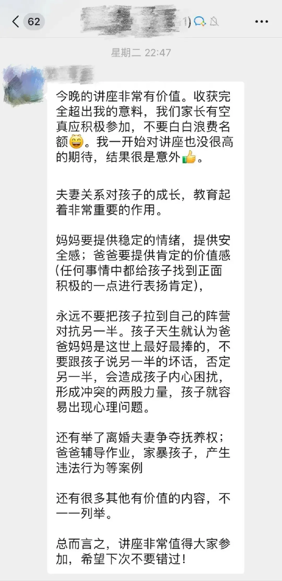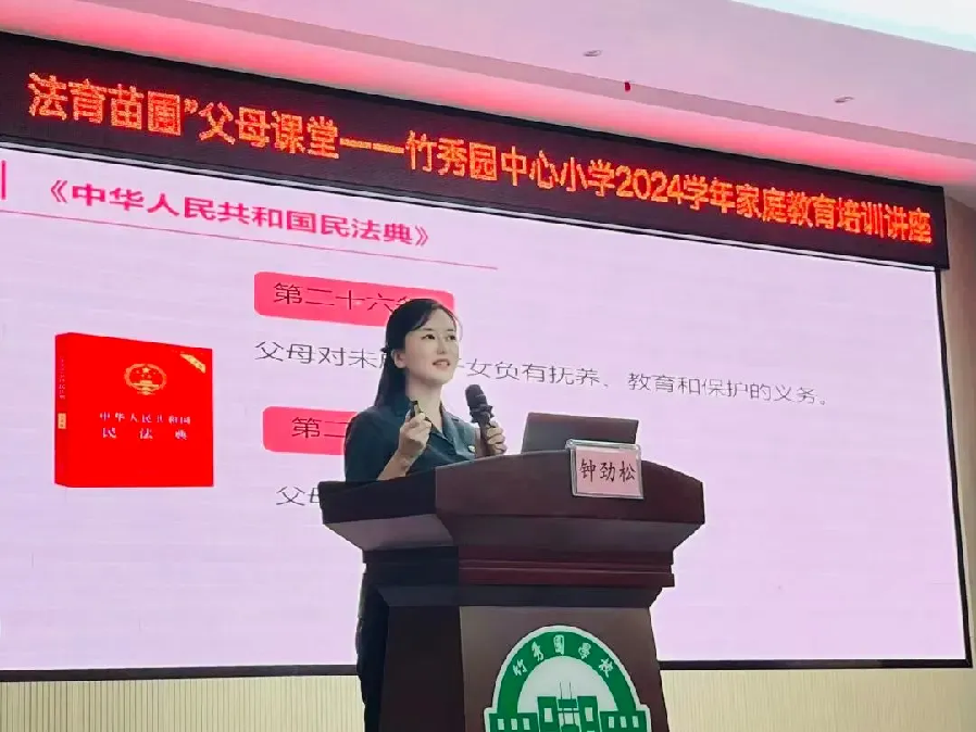 “為了辦好這次講座,市中級法院與學(xué)校進(jìn)行了多次溝通以及深入的調(diào)研,根據(jù)當(dāng)前孩子的現(xiàn)狀為父母們量身打造,從活動現(xiàn)場情況來看,法官講得生動,家長們聽得認(rèn)真,紛紛表示獲益匪淺,在今后的生活中會更加用心呵護孩子成長,尊重孩子權(quán)利,讓家庭成為子女幸福溫暖的港灣?!敝猩绞心蠀^(qū)竹秀園中心小學(xué)教導(dǎo)主任林素巧表示。