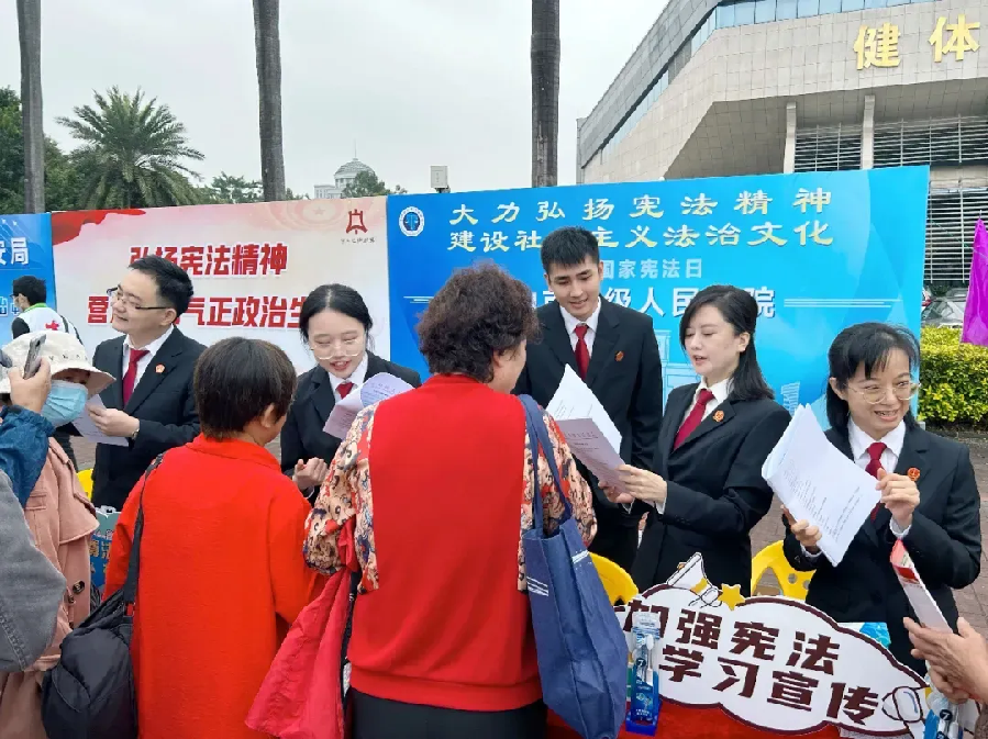 把學(xué)習(xí)宣傳習(xí)近平法治思想作為“八五”普法的首要任務(wù),將普法工作納入全市法院高質(zhì)量發(fā)展的總體規(guī)劃和工作重點(diǎn)。以普法責(zé)任制實(shí)施方案為主線(xiàn),制定年度普法計(jì)劃、普法工作要點(diǎn)、普法責(zé)任清單等一系列配套制度文件,形成“1+3+5+N”普法服務(wù)體系框架。將普法工作融入全市審判執(zhí)行工作,每年圍繞“12·4”國(guó)家憲法日等重要節(jié)點(diǎn),聯(lián)合最高法院、省法院、市普法辦等開(kāi)展主題宣傳97場(chǎng),逾萬(wàn)人參與。 二是把法庭審判作為人民法院普法的主陣地