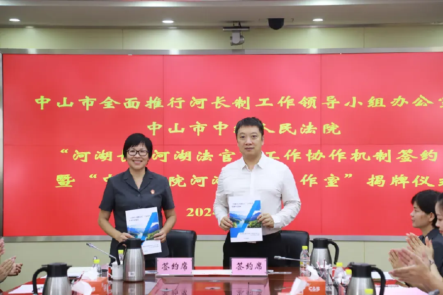 ▲中山市中級人民法院與中山市河長辦舉行《“河湖長+河湖法官”工作協(xié)作機(jī)制共建協(xié)議》簽約暨“中山法院河湖法官工作室”揭牌儀式。 中山市中級人民法院黨組成員、副院長李桂蘭介紹,根據(jù)今年5月簽訂的《中山市全面推行河長制工作領(lǐng)導(dǎo)小組辦公室