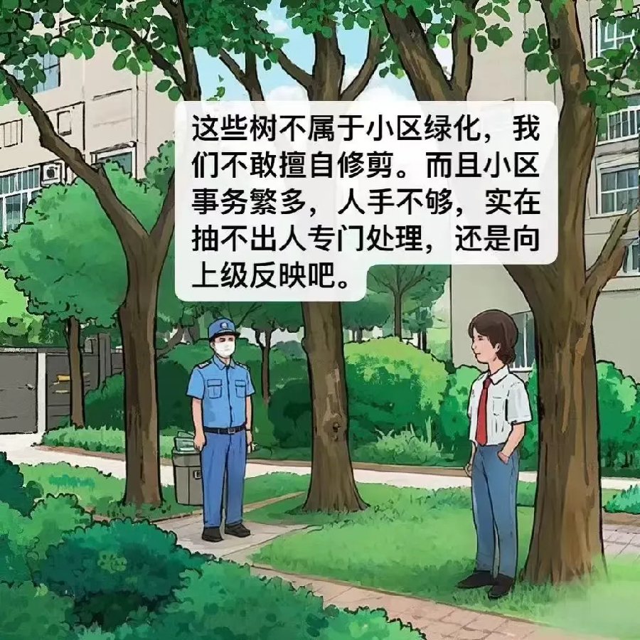 尚女士夫婦多年前購(gòu)入三鄉(xiāng)鎮(zhèn)某小區(qū)的獨(dú)棟別墅,與物業(yè)公司簽訂前期物業(yè)服務(wù)協(xié)議,其中明確約定業(yè)主的物業(yè)若存安全隱患危及公共及他人利益,業(yè)主應(yīng)及時(shí)維修養(yǎng)護(hù),否則物業(yè)公司有權(quán)處理。收樓后,尚女士依約繳納物業(yè)費(fèi),前期1.8元每月每平方米,后期2.5元每月每平方米,一直交到2022年6月30日。平靜生活突生變故,尚女士發(fā)現(xiàn)相鄰獨(dú)棟別墅院落里的三棵小葉欖仁樹瘋長(zhǎng)。走進(jìn)自家院子,只見樹枝肆意伸展,有的甚至頂?shù)搅舜皯?,隨時(shí)可能打破玻璃。地上滿是厚厚的落葉,腐臭氣味彌漫。公共水系也被落葉和雜物堵塞,水流遲緩,水面漂浮著綠藻和垃圾,散發(fā)出陣陣惡臭,蚊蟲滋生,嗡嗡亂飛。