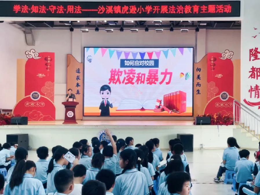 在沙溪鎮(zhèn)虎遜小學,市第二法院綜合審判庭庭長瞿兵為高年級同學們作法治安全教育講座。瞿法官以通俗易懂的語言,結(jié)合真實且發(fā)人深省的案例,深入淺出地講解了與小學生日常學習生活緊密相關的法律知識。在場同學們?nèi)褙炞?,踴躍互動。