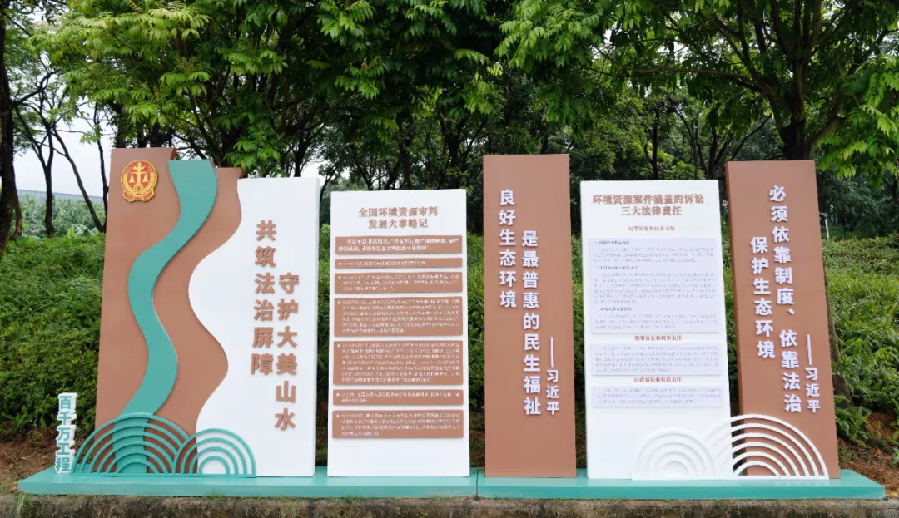 ▲基地坐落在鳳凰山森林公園西門。 生態(tài)保護,離不開全民參與。市第一人民法院持續(xù)開展“法官下村居”“綠美鄉(xiāng)村”等系列活動,通過社區(qū)座談、實地走訪等形式,普及法律條款,以案釋法,提升群眾環(huán)保法治意識。 在“世界環(huán)境日”“全國生態(tài)日”等重要節(jié)點,市第一人民法院積極運用微信公眾號、短視頻平臺等新媒體開展主題宣傳。去年8月15日,在第二個全國生態(tài)日,法院在金鐘湖水庫公園通過巡回庭審公開審理一起“污染環(huán)境罪”案件,邀請水務(wù)執(zhí)法人員、企業(yè)代表及青少年現(xiàn)場旁聽。