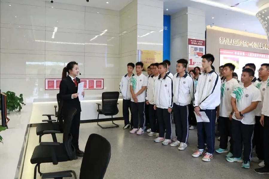 在“法僑共建”工作站前,法官以“情與法交融”的方式介紹司法服務(wù)粵港澳大灣區(qū)建設(shè)的生動(dòng)實(shí)踐,讓在場(chǎng)學(xué)生感受到法治背后的溫情。